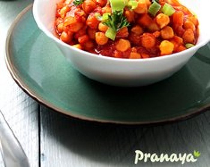 Máslovo cizrnové kari s kešu a rajčaty, jasmínová rýže