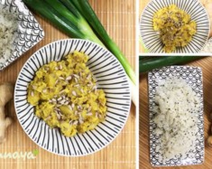 Bramborové kari s květákem Aloo Gobi, jasmínová rýže